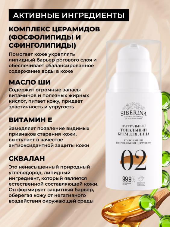 Натуральный тональный крем для лица 02 с маслом ши и комплексом церамидов