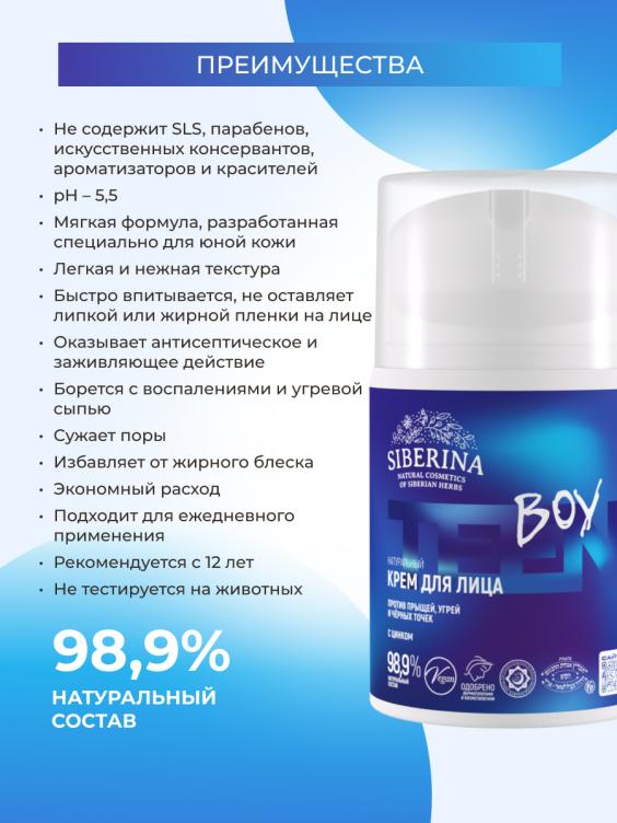 Легкий натуральный крем для лица обеспечивает комплексный уход за проблемной кожей: поддерживает оптимальный водный баланс, устраняет жирный блеск, борется с воспалениями, комедонами и черными точками.