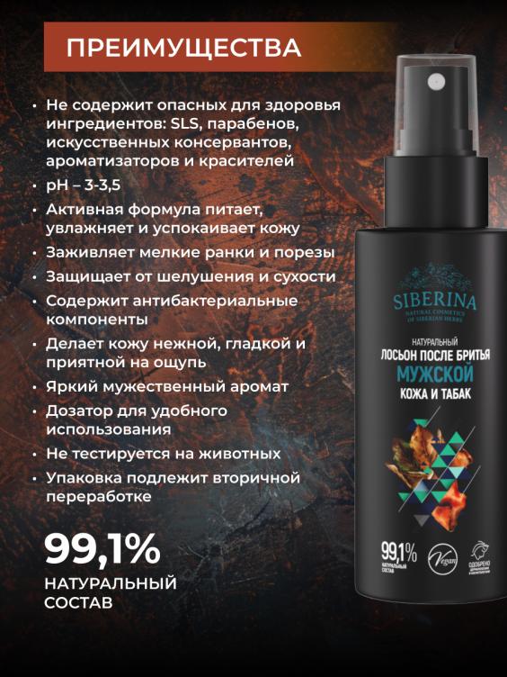 Натуральный мужской лосьон после бритья “Кожа и табак”