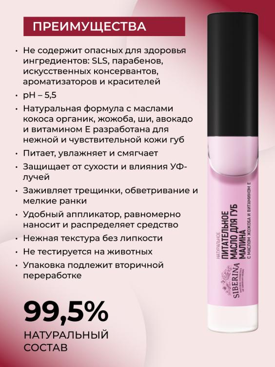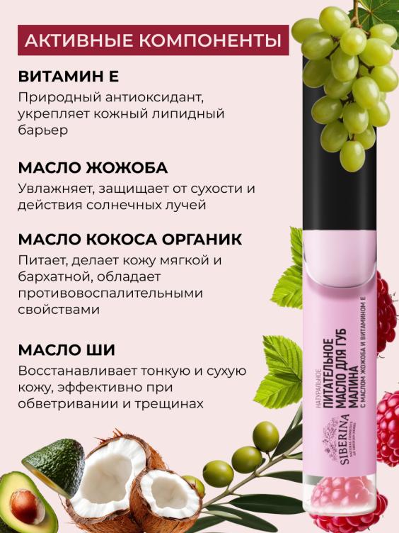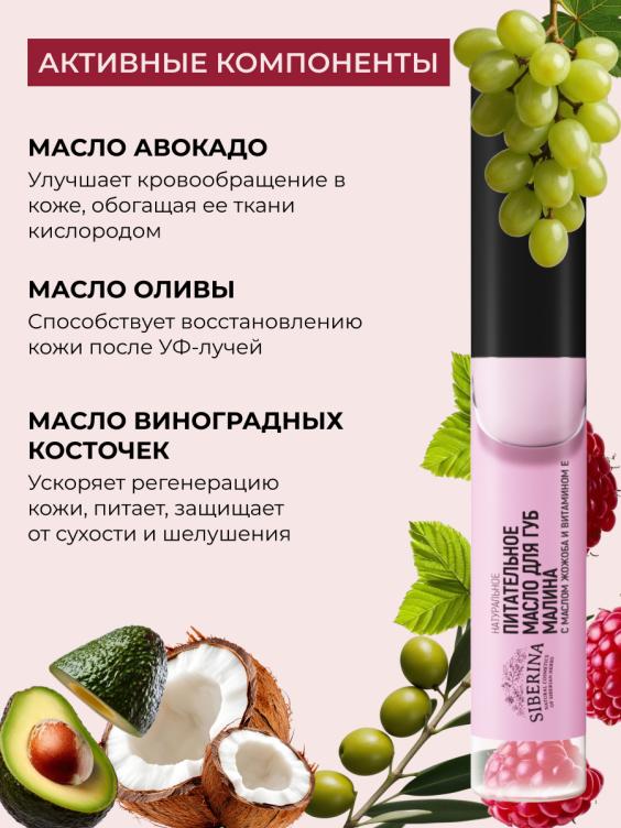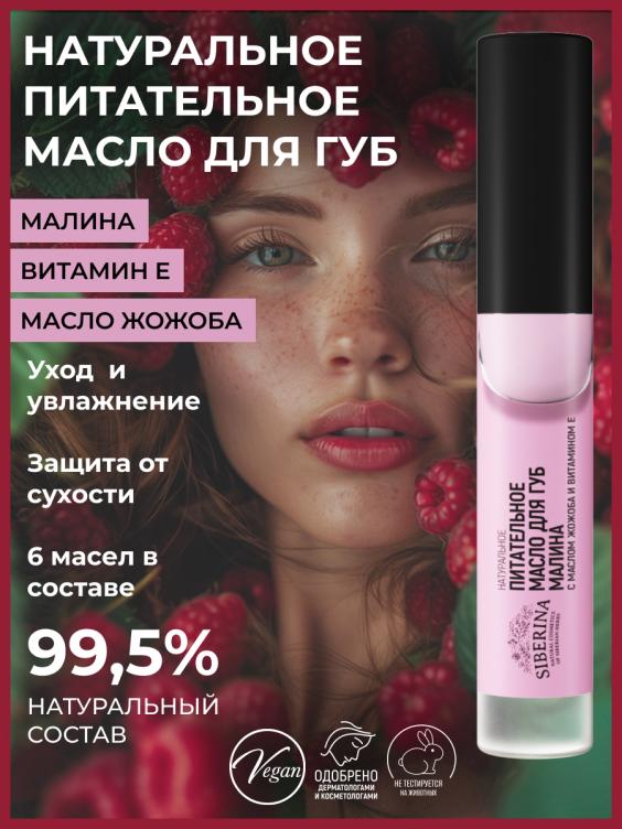 Натуральное питательное масло для губ "Малина" с маслом жожоба и витамином Е