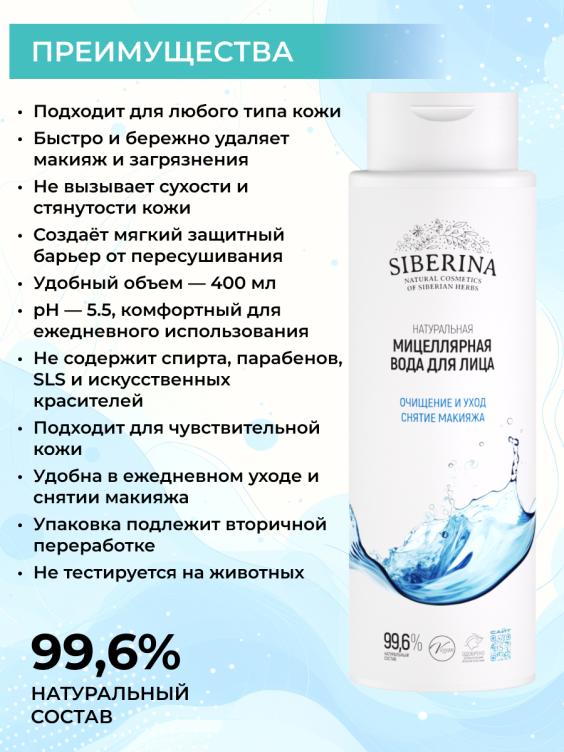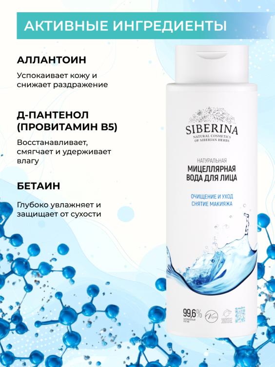Мицеллярная вода — это универсальное средство для мягкого, но эффективного очищения кожи лица. Она быстро удаляет макияж и излишки жира, не травмируя кожу. Подходит для любого типа кожи и очень удобна в использовании. АЛЛАНТОИН обладает смягчающими и успокаивающими свойствами. Он помогает уменьшить раздражение, покраснение и ощущение стянутости кожи. Стимулирует процессы обновления клеток и улучшает способность кожи удерживать влагу, делая ее более гладкой, мягкой и эластичной. Д-ПАНТЕНОЛ обладает смягчающими, успокаивающими и заживляющими свойствами. Он помогает снизить раздражение, восстановить поврежденную кожу и ускорить процессы её восстановления. БЕТАИН — это натуральное вещество, которое эффективно увлажняет кожу, привлекая и удерживая влагу. Он создает защитный слой на поверхности кожи, препятствующий пересушиванию и повреждению, способствует сохранению её гладкости и мягкости. УПАКОВКА: 400 мл. СРОК ГОДНОСТИ: 2 года, после вскрытия хранить 6 месяцев.