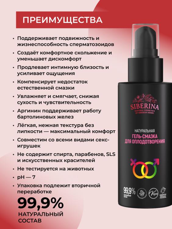 Увлажняющий гель "Для оплодотворения" способствует поддержанию подвижности и живучести сперматозоидов, помогая им достичь своей цели - оплодотворения яйцеклетки. Кроме того, гель компенсирует недостаток естественной смазки, обеспечивает нежное скольжение, продлевая длительность секса и усиливая оргазм. С ним ваша интимная близость станет еще более яркой, чувственной и возбуждающей! АРГИНИН способствует нормализации функции бартолиновых желез, вырабатывающих смазку. ОБЪЕМ: 100 мл. СРОК ГОДНОСТИ: 18 месяцев, 3 месяца после вскрытия.