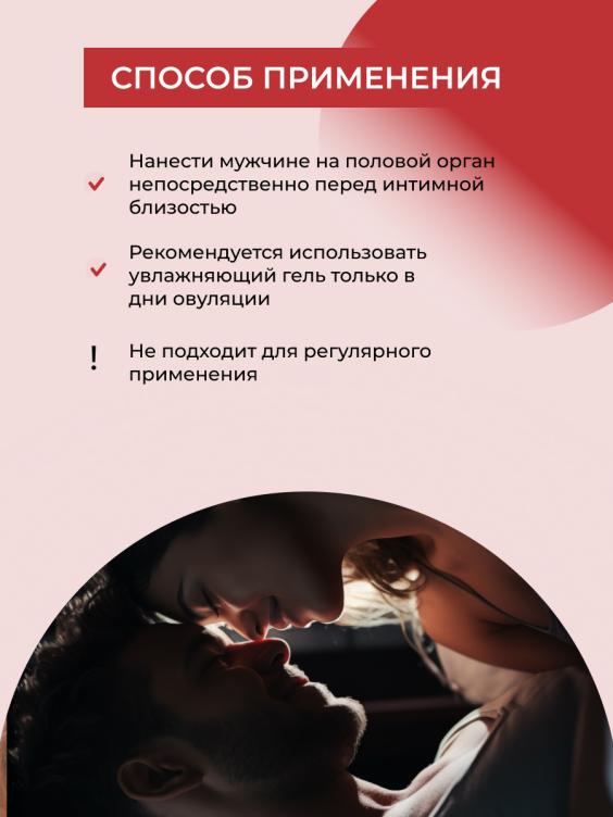 Нанести мужчине на половой орган непосредственно перед интимной близостью. Рекомендуется использовать увлажняющий гель только в дни овуляции. Не подходит для регулярного применения.