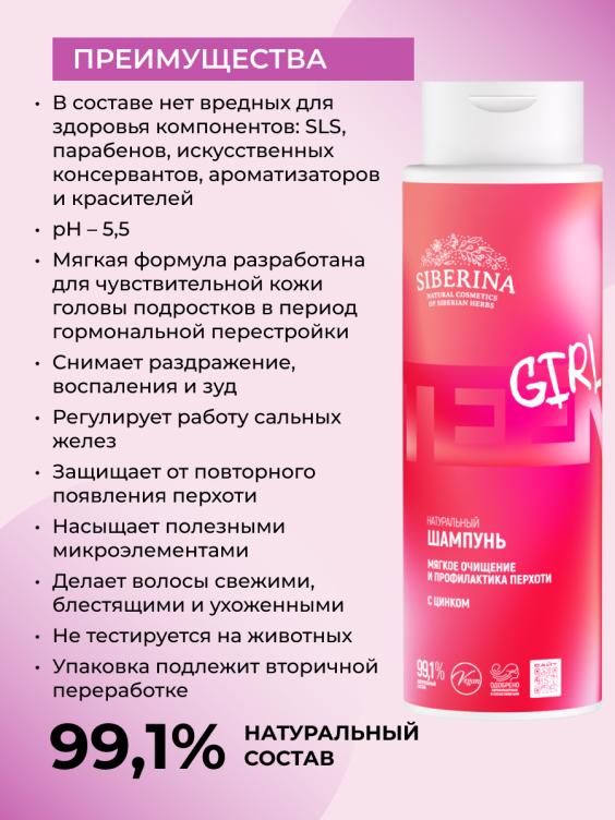 Шампунь с цинком “Мягкое очищение и профилактика перхоти”