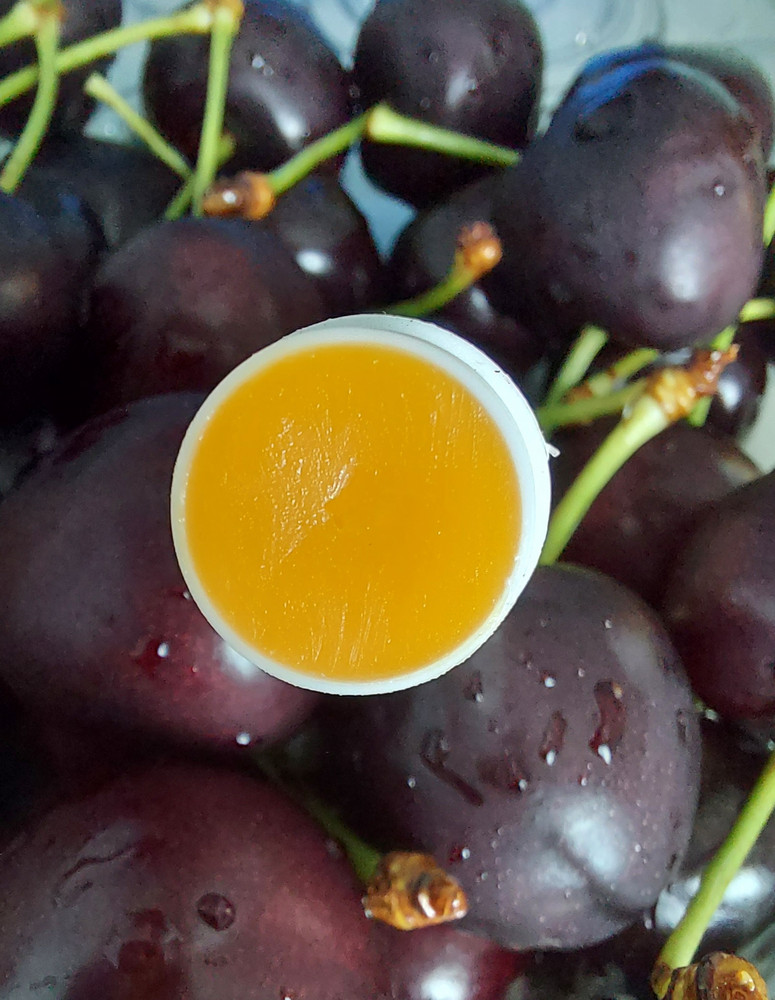 Бальзамчик цвета облепихи, гладкой и твердой формы с прямым срезом. Аромат сладенький, не приторный.
