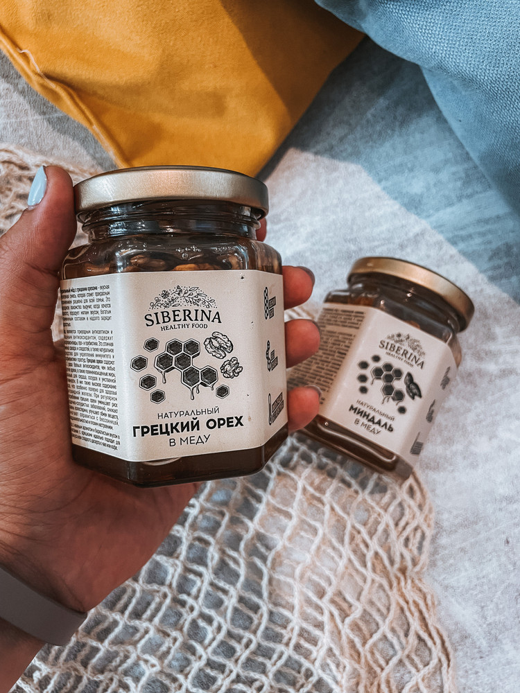 Мёд свежий и вкусный. Орешки цельные и не горькие. Баночка наполнена полностью. С удовольствием пьём чай с таким перекусом