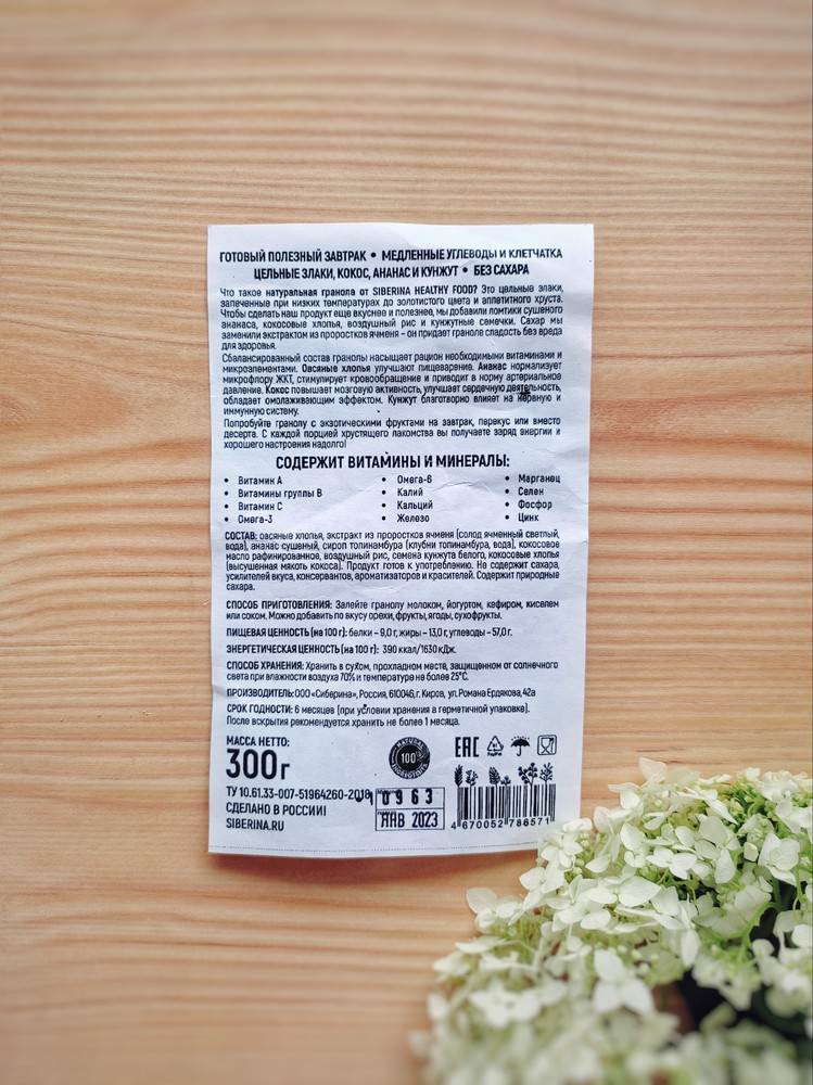 Натуральная гранола "Кокосовая" с ананасом GRN(5)-SIB