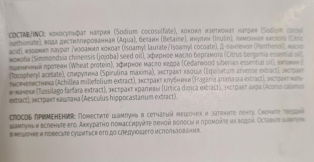 Отличный твёрдый шампунь, пользуюсь уже несколько недель. Отлично промывает волосы, не вызвал перхоти! Волосы менее жирнятся, наверное даже скорее ста...
