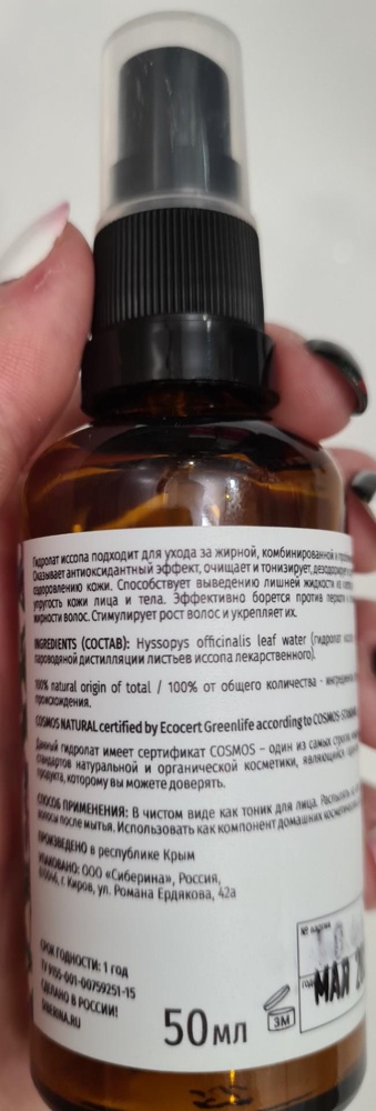 Приветствуем! Приятно, что вы выбираете натуральную косметику SIBERINA. Натуральность и качество нашей продукции подтверждают международные сертификат...