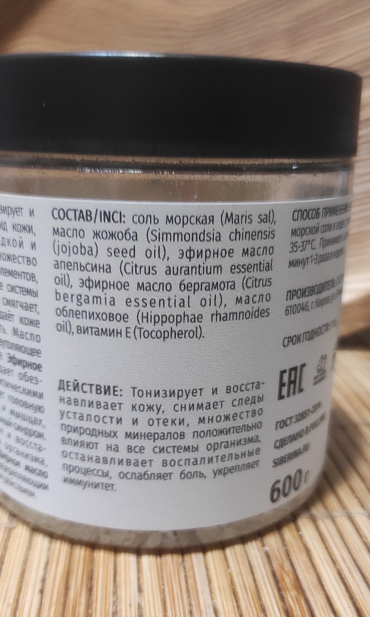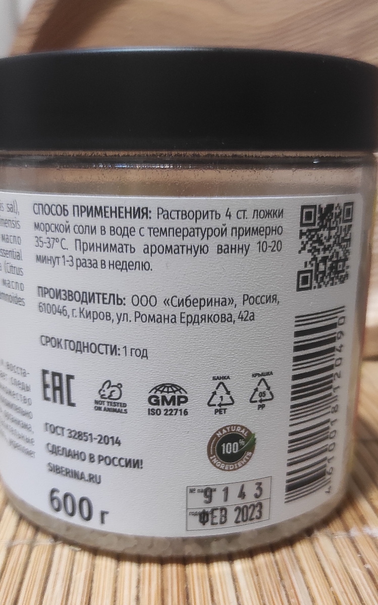 Довольно большая банка 600 г. Очень привлекательный состав из натуральных компонентов: морская соль,...