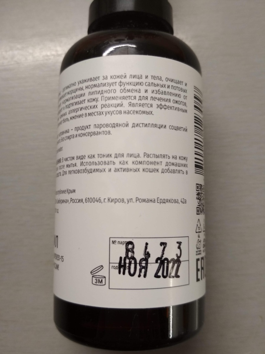 Очень приятный гидролат, без химии и спирта...
