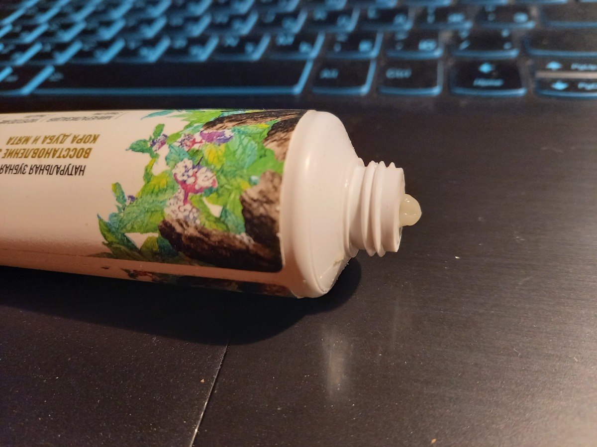 Эту пасту купила из-за фторида-натрия в составе, хотя до этого натуральными зубными пастами...