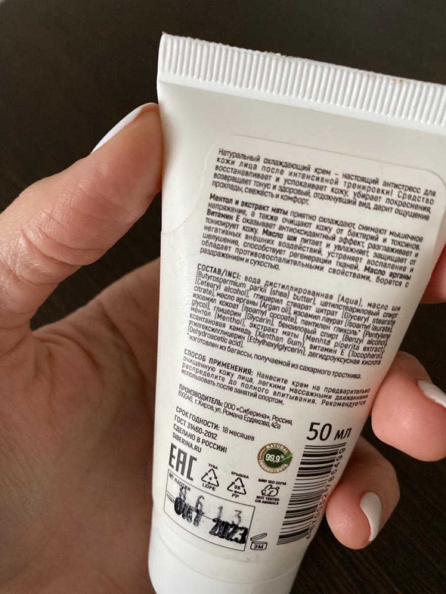 Охлаждающий крем для лица после занятий спортом с ментолом и витамином Е CR(58)-SIB