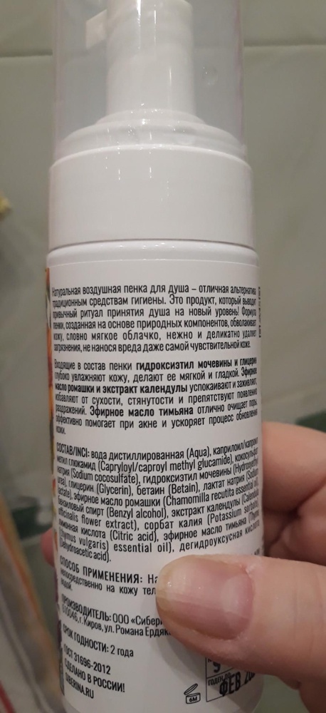 Пенка для душа гипоаллергенная "Ромашка и календула" PNKT(6)-SIB