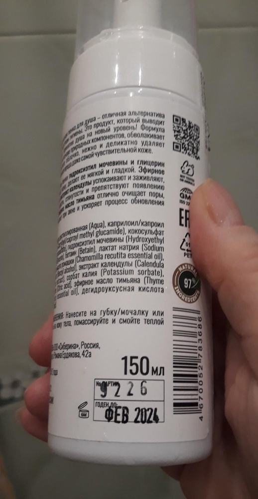 После первого использования мне пенка понравилась. Только дороговато (324 руб). Хорошо пенится, легко наносится на тело. Специально понюхала, запах сл...