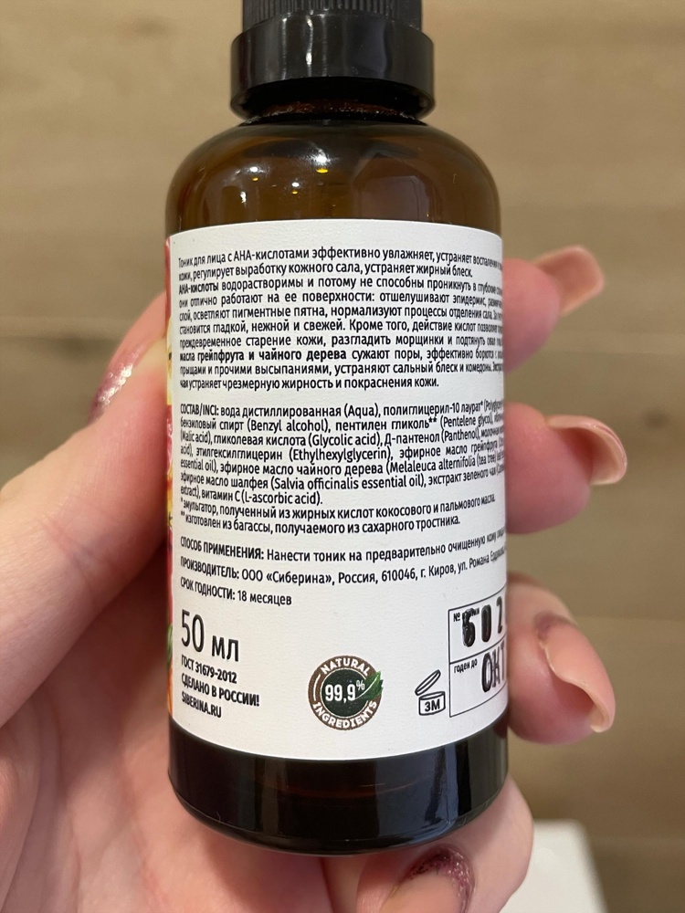 Тоник для лица с АНА-кислотами против черных точек и жирного блеска TNK(8)-SIB