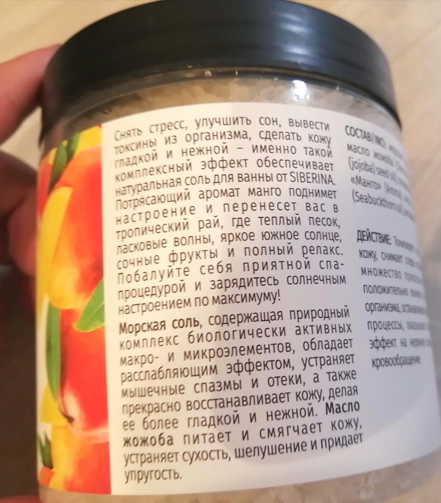 Соль с добавлением масел с приятным экзотическим ароматом манго. Питает кожу, насыщает полезностями и поднимает настроение.