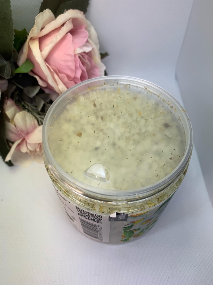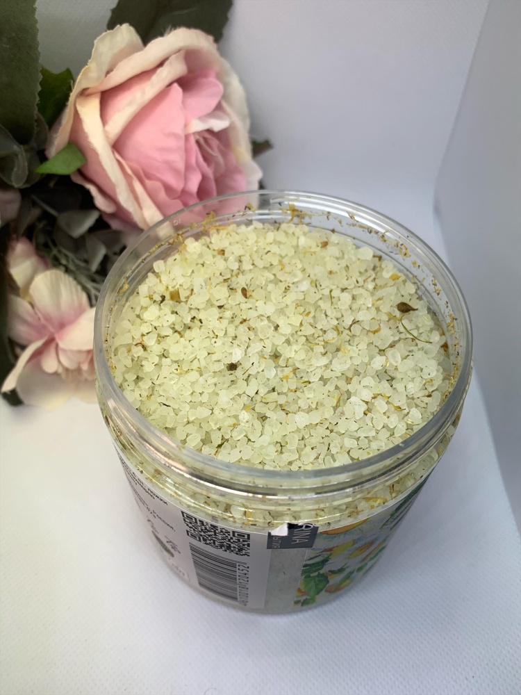 Соль упакована в пластиковую банку объём 600 г. На этикетке указан знак фирмы, описание товара, на обратной стороне есть информация о действии этой в...