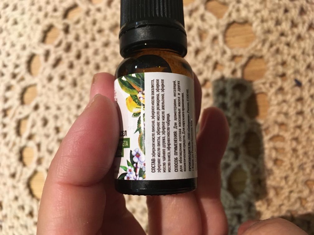 Шикарный микс из 8 эфирных масел, в составе есть в том числе лимона, эвкалипта и чабреца. Капаю дозатором-пипеткой, который встроен во флакон. Сразу ч...