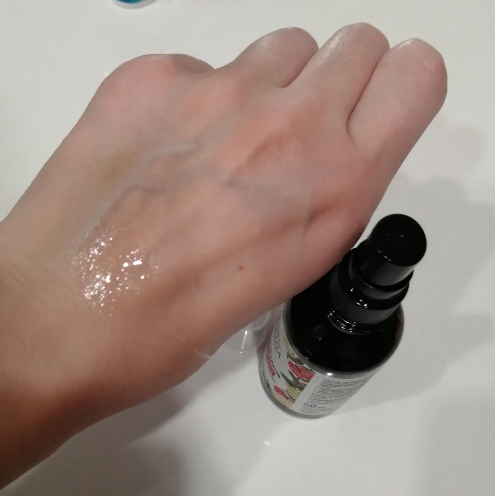 Удобный дозатор, хорошо распыляет, аромат очень лёгкий, почти не чувствуется. Кожу тонизирует, чуть поры стягивает.