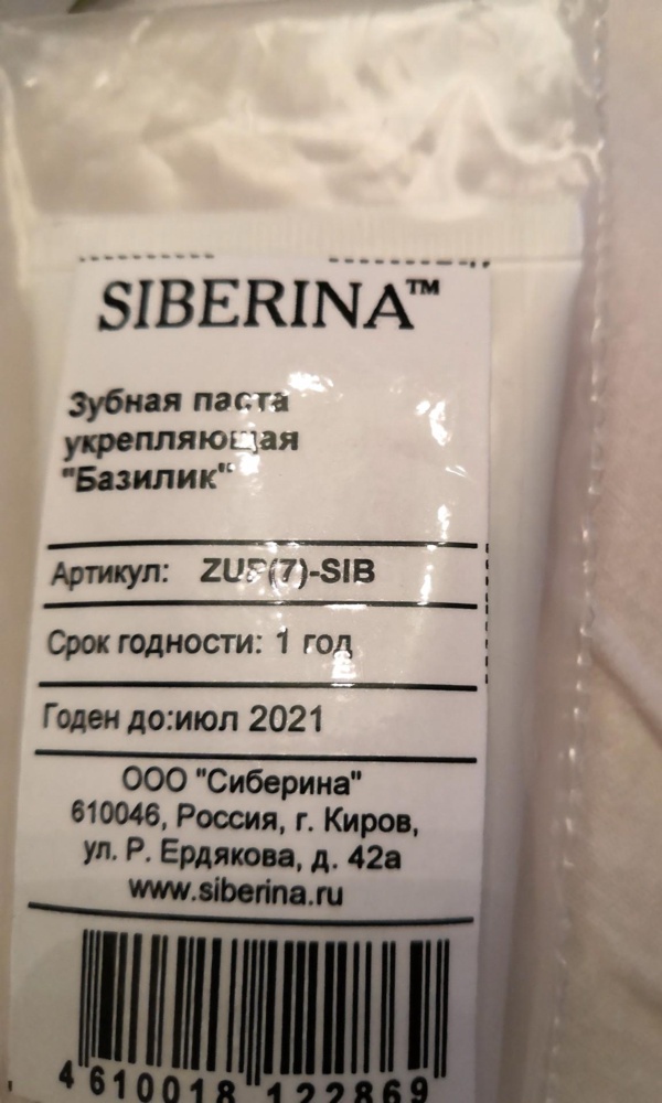 Зубная паста укрепляющая "Базилик" ZUP(7)-SIB