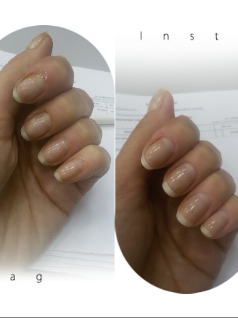 а это после процедуры ещё немного покусала щипчиками, прошлась пилочкой и покрыла бесцветным лаком. удалять кутикулу с этим средством очень легко и бы...