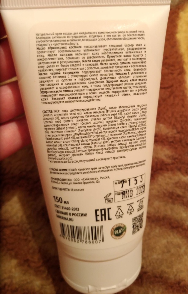 Отличный крем. Быстро впитывается. Увлажняет и питает кожу. Не оставляет жирной пленки. Доставка быстрая, упакован отлично