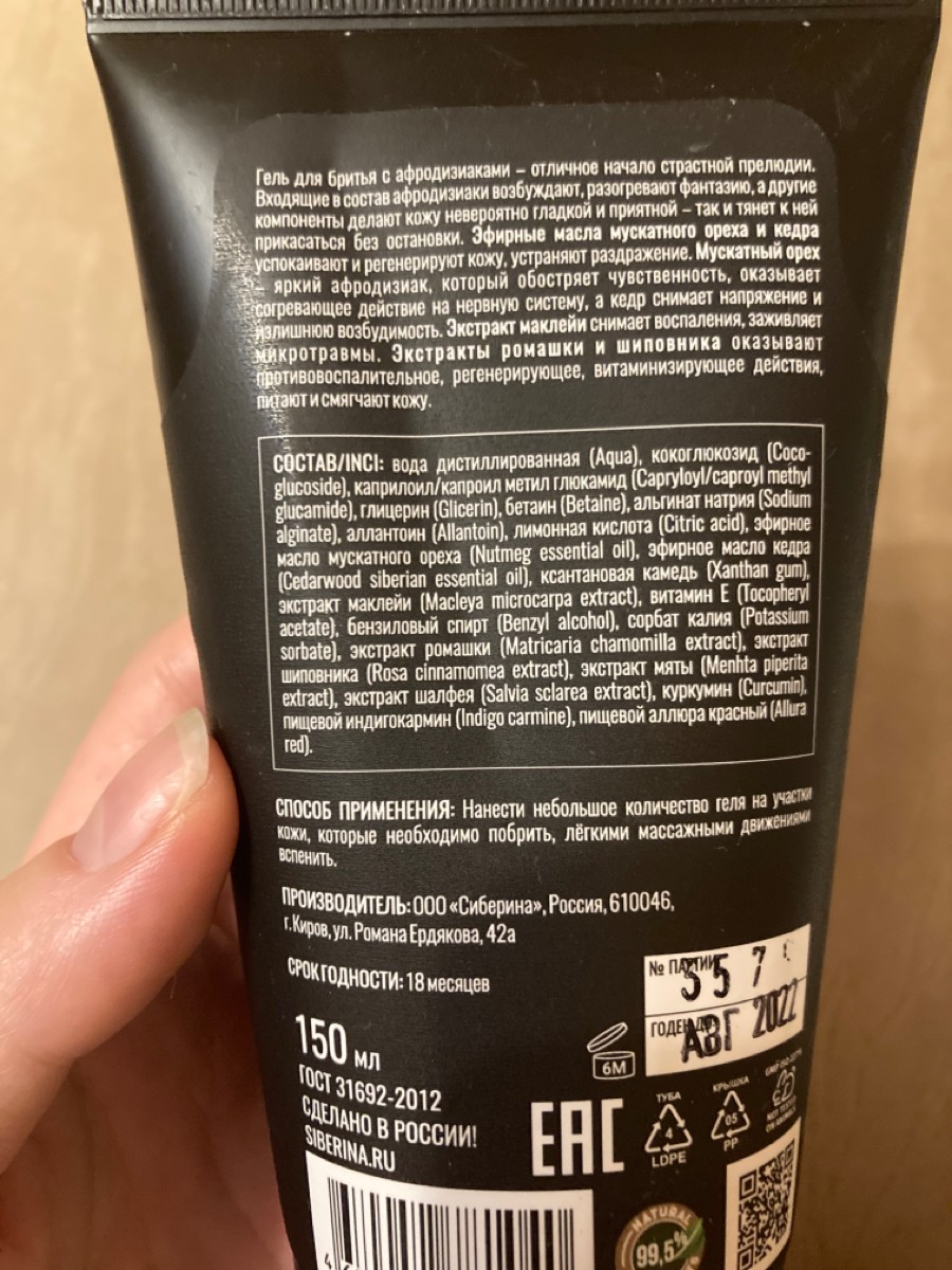 Приятный восточно-пряный запах. Пену не образует, возможно, что-то не так делаю, по факту как обычный гель для душа. Неоднозначное впечатление. Плюс ч...