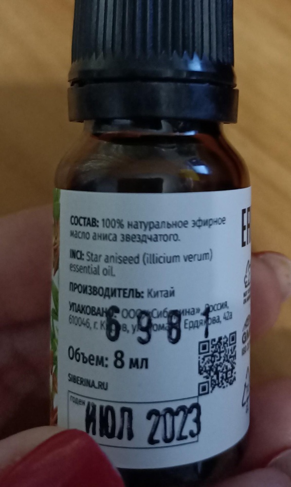 Благодарим Вас за обратную связь! Это 100% натуральное эфирное масло аниса звездчатого. Спасибо Вам, информацию в описании исправим.