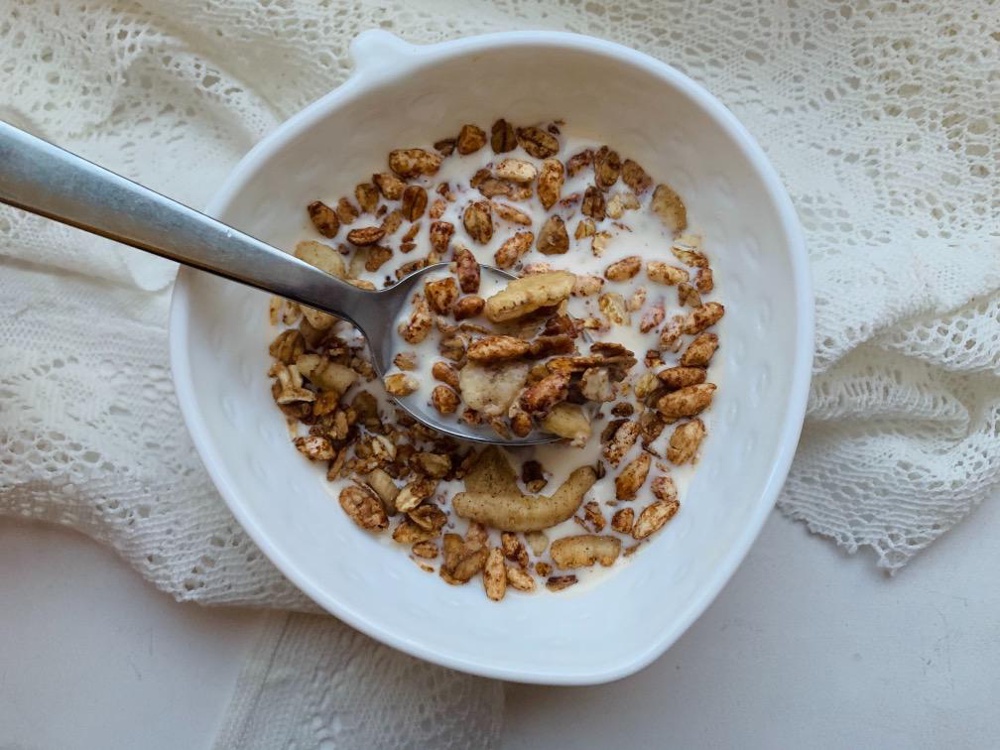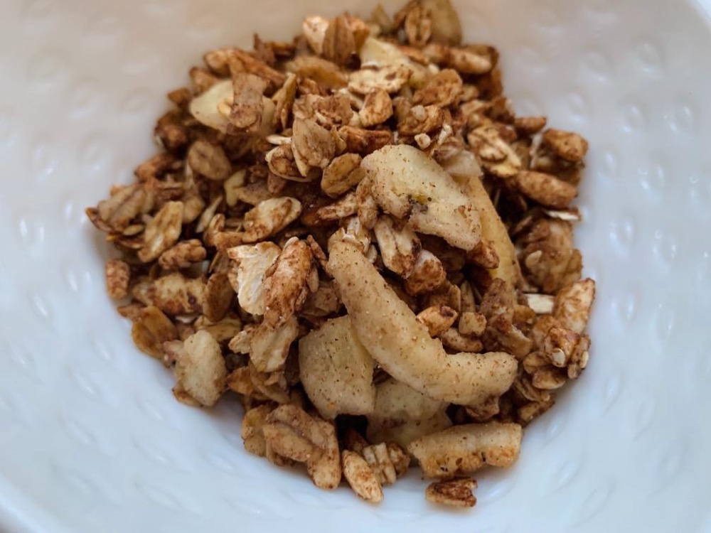 Вкусная гранола - все ингредиенты свежие, хлопья мягкие, вкус разбавляет воздушный рис. Ананас мелкими кусочками, кокос хрустящий. Без сахара, но прия... Читать полностью...