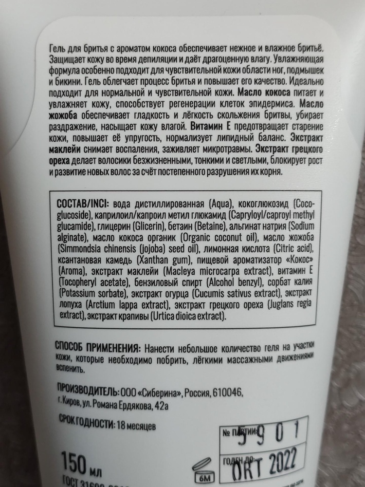 Гель для бритья «Кокос и жожоба» GBR(5)-SIB