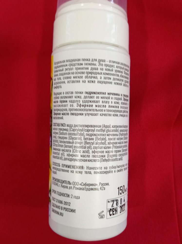 Пенка для душа увлажняющая "Лимон и герань" PNKT(8)-SIB