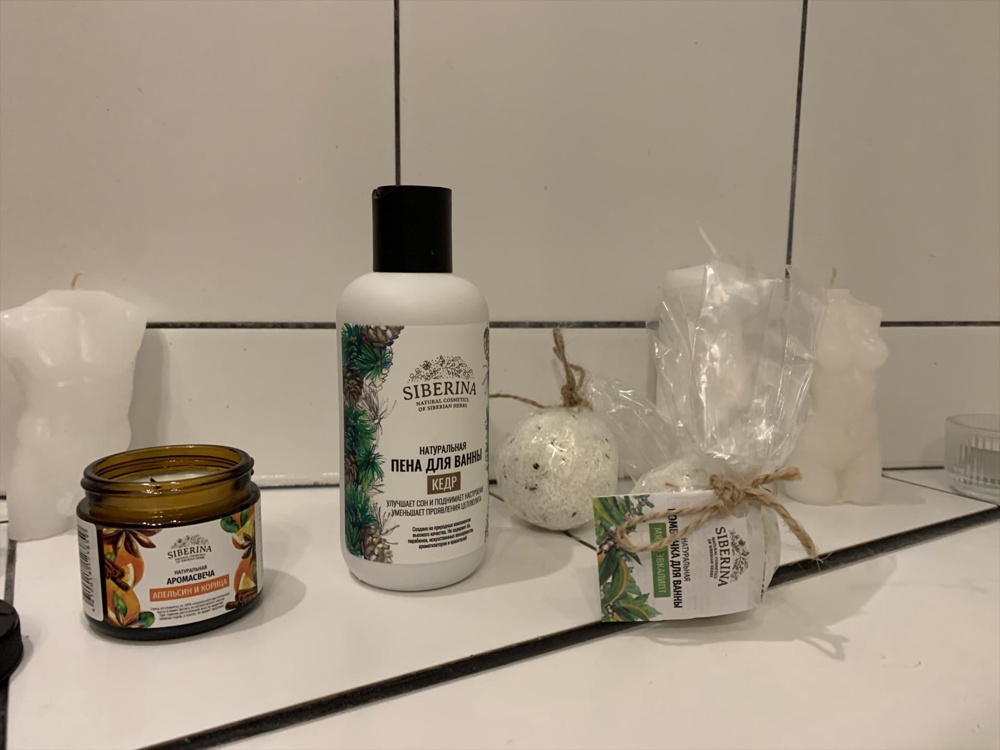 Минусы: бомбочка рассыпалась до того, как кинула ее в воду, оставила грязноватый масляной след в ванной. Плюсы: очень классно пахнет, кожа после неё х...