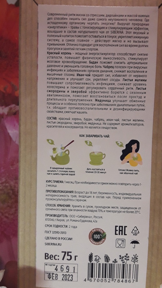 Мой чай для длительных физических тренировок ,и иммунитета Натуральный травяной чай"БОДРЯЩИЙ" С красным корнем и Иван-чаем. Состав огромный насыщен... Читать полностью...