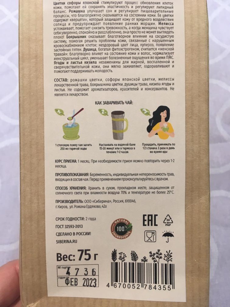 Травяной чай "Источник красоты и молодости" с софорой японской и душицей TEA(4)-SIB