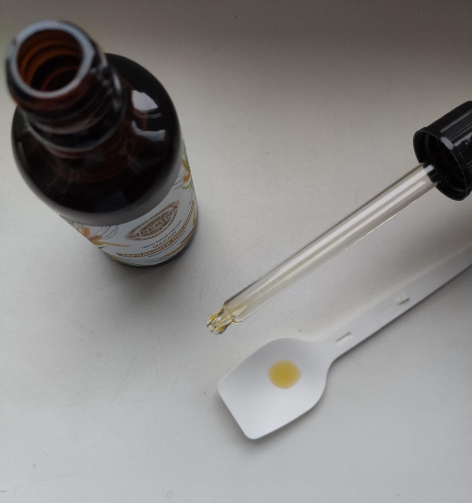 Флакон из темного стекла, само масло желтенькое, пахнет ...