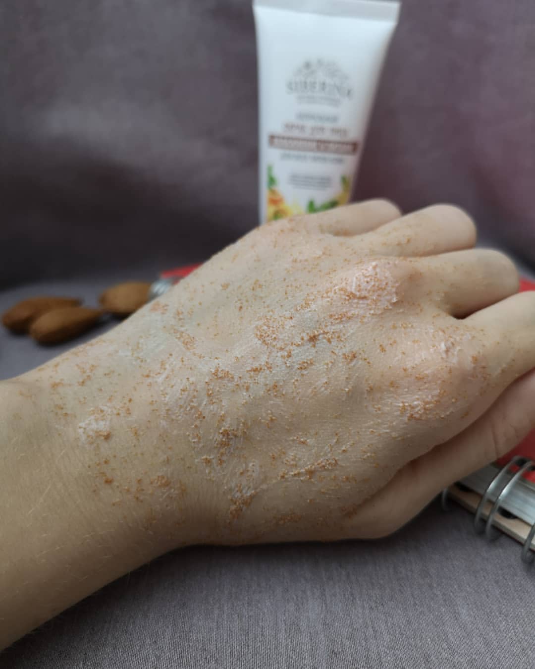 Натуральный скраб Сиберина с растительными липидами бережно отшелушивает отмершие клетки кожи.